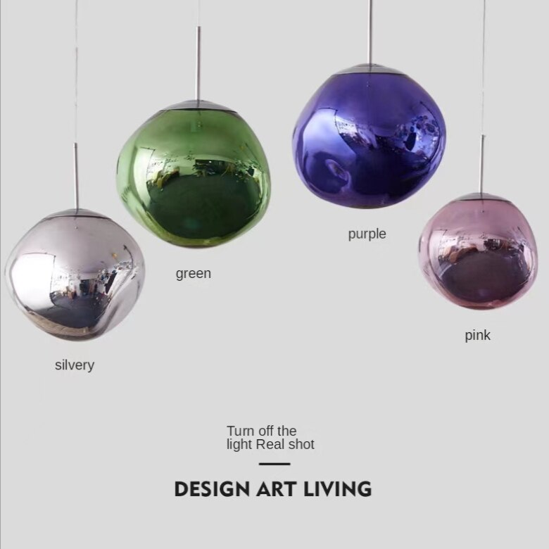 Led Lava Glass is a beautifully distorted pendant light in a modern Copper finish and matching ceiling rose. Emitting an attractive, mildly hallucinogenic light, this pendant light creates a mesmerizing melting hot-blown glass effect when on and a mirror-finish effect when off. it emits an attractive, mildly hallucinogenic light. Mirza pendant lights are available in copper, chrome, smoke gray, and gold.