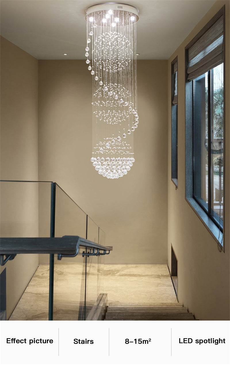 Modern Spiral LED Crystal Chandelier - Fixture for Staircase